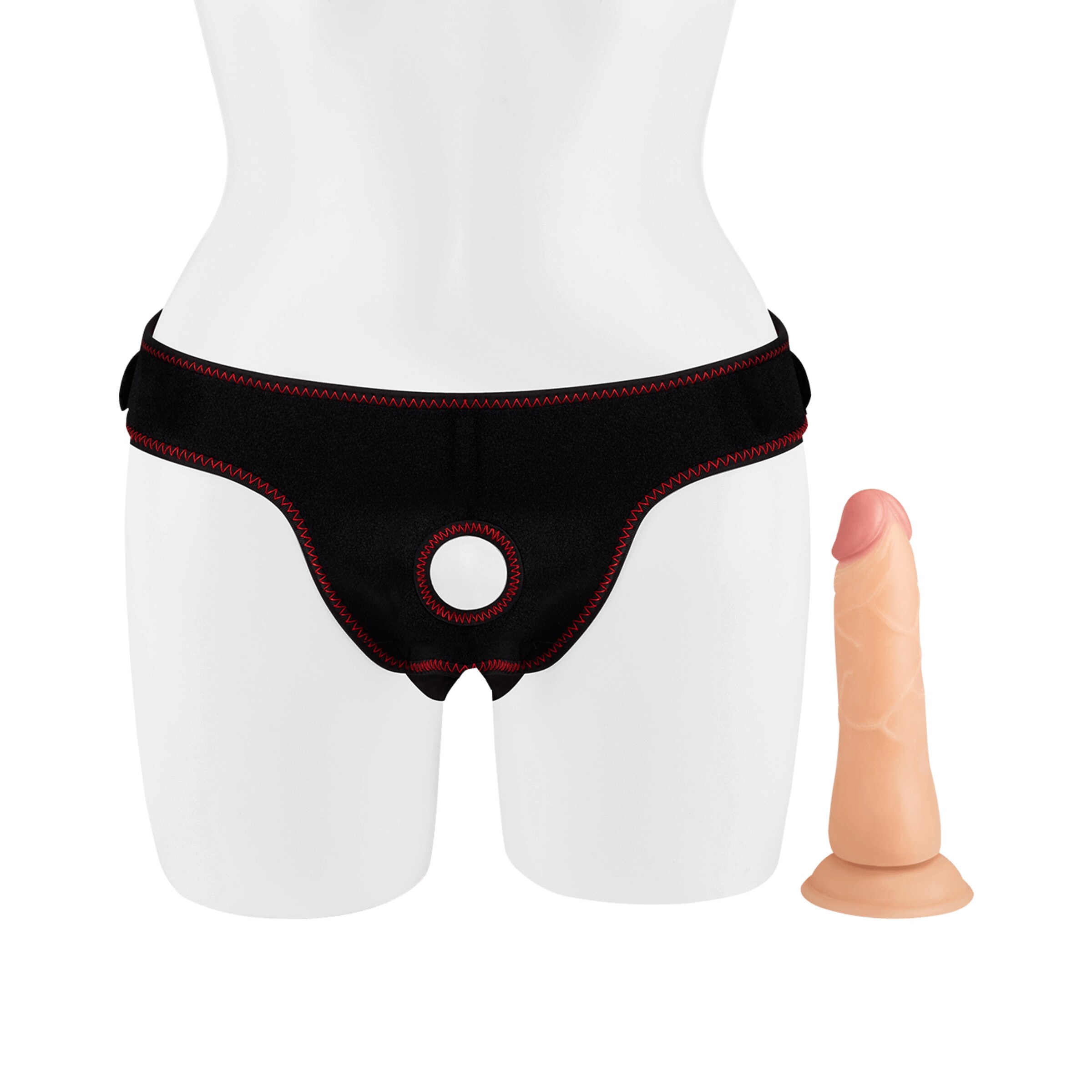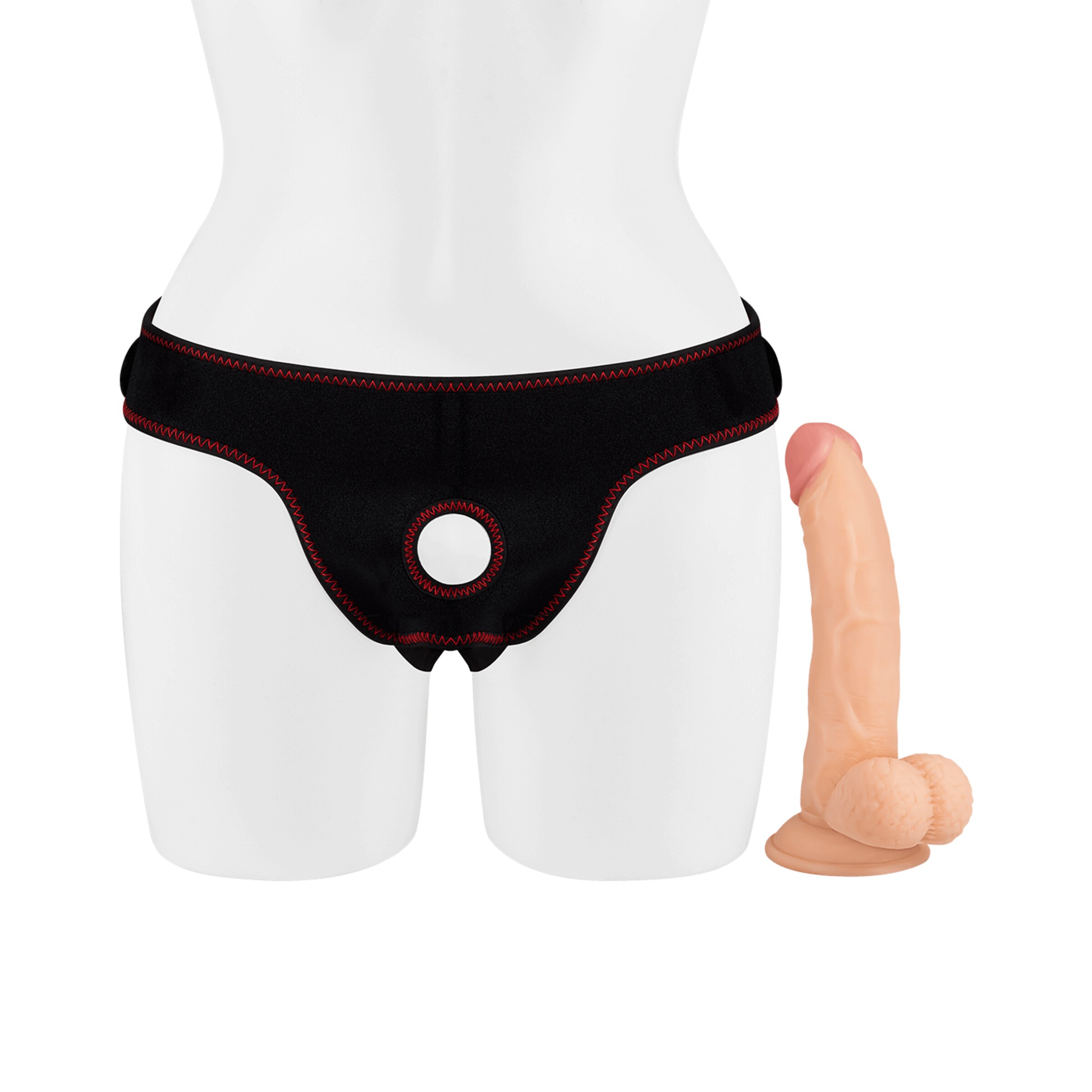 Der praktische Harness ist bis zu einer maximalen Breite von ca. 96 cm größenverstellbar. Dank der hohlen Beschaffenheit des Dildos ist die Verwendung für sie und ihn möglich.